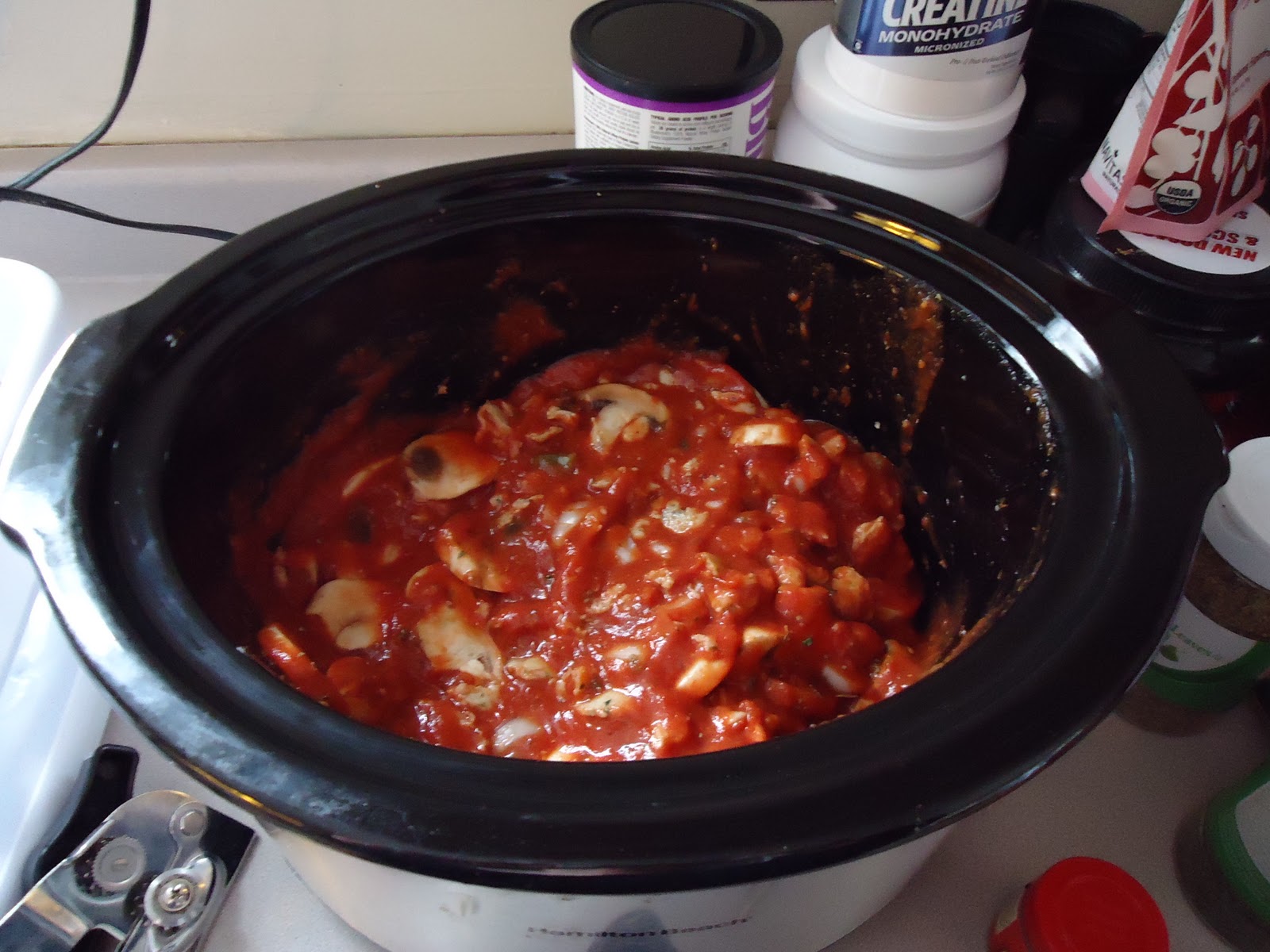 4) Cook on low for 6-7 hours or high for 3-4 hours. This it to let the flavors marry, this sauce is fully cooked, you could eat it cold out of the pot right now if you wanted!...but please don't.